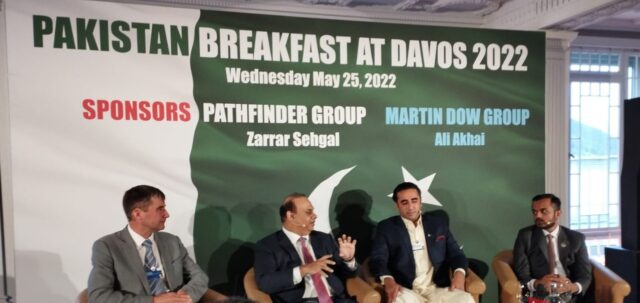 Federal Minister for Foreign Affairs Bilawal Bhutto Zardari has marked his presence at traditional Pakistan Breakfast in sidelines of World Economic Forum at Davos on May 25, 2022. Pakistan Breakfast is Pakistan’s signature event which is held on every WEF annual meeting to discuss Pakistan’s economic & political situation.
