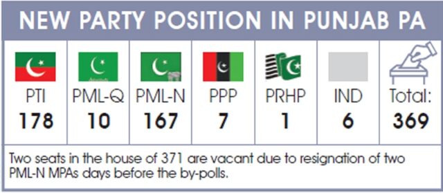 The PTI’s winning candidates and their constituencies include Hassan Malik (PP-83, Khushab-II); Irfan Ullah Khan Niazi (PP-90, Bhakkar-II); Ali Afzal Sahi (PP-97, Faisalabad-I); Mian Muhammad Azam (PP-125, Jhang-II); Mehr Muhammad Nawaz (PP-127, Jhang-IV); Khurram Shehzad Virk (PP-140, Sheikhupura-VI); Mian Muhammad Akram Usman (PP-158, Lahore-XV); Shabbir Ahmad Gujjar (PP-167, Lahore-XXIV); Malik Zaheer Abbas Khokhar (PP-170, Lahore-XXVI); Muhammad Ghulam Sarwar (PP-202, Sahiwal-VII); Makhdoom Zain Hussain Qureshi (PP-217, Multan-VII); Muhammad Aamir Iqbal Shah (PP-224, Lodhran-I) and Muhammad Moazzam Ali Khan (PP-272, Muzaffargarh-V).